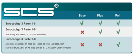 • Incluye múltiples normativas internacionales como Eurocódigo 3, AISC, DIN, IS800 y BS 5950.